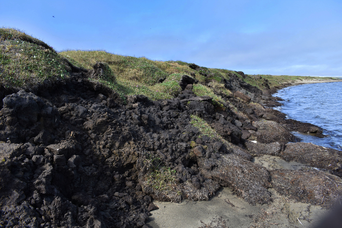 Eroding cliff bluffs adjacent to Elson Lagoon near Utqiagvik, Alaska